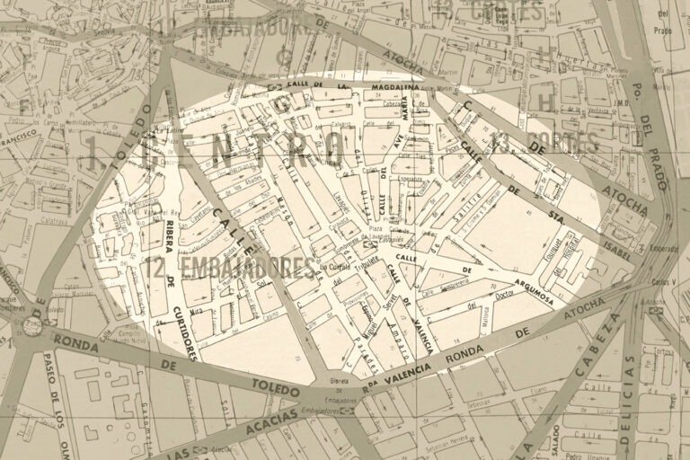 Lavapiés es la antigua judería. Tiene unos límites precisos, que van, al norte, hasta la plaza de Tirso de Molina, al oeste, hasta la Puerta de Toledo y al sur-este hasta la Estación de Atocha —centro neurálgico de comunicaciones de Madrid—.